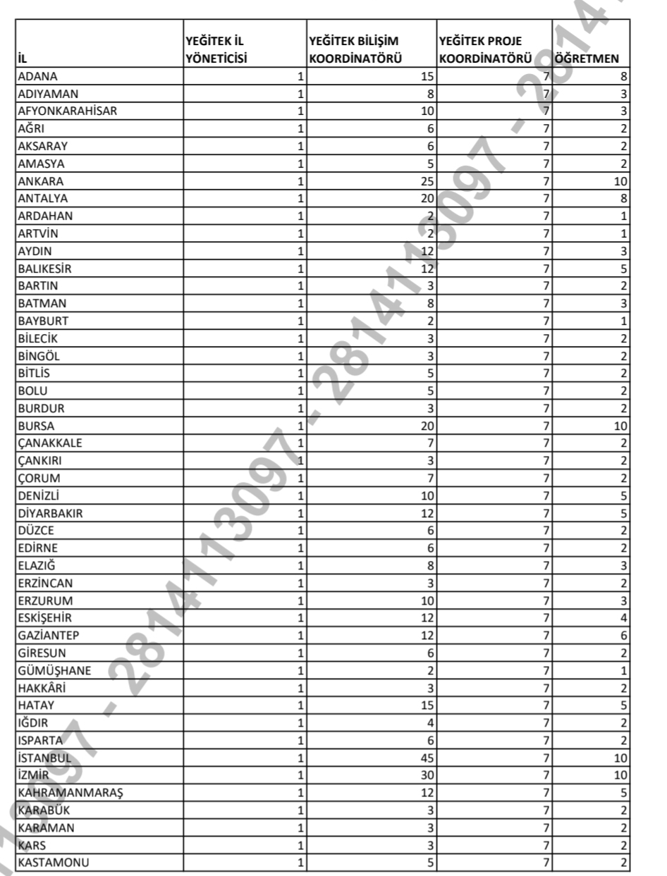Buna göre Milli Eğitim Bakanlığı her ile bir Yeğitek sorumlusu atayacak. Atanacak olan söz konusu sorumlular İlçe milli eğitim müdürlükleri bünyesinde görev yapmakta olan ilçe sorumluları ile beraber hareket ederek okullarda teknoloji kullanımının artırılması için bakanlık tarafından verilen talimatların uygulanmasını sağlayacak.